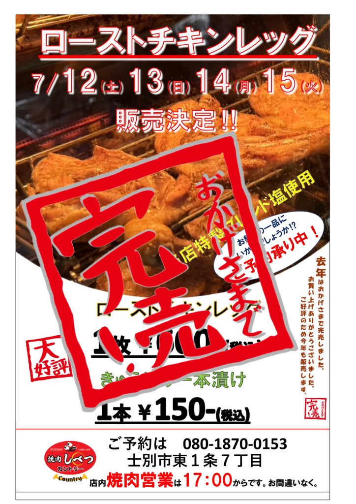 おかげさまで ローストチキンレッグ完売 ありがとうございました