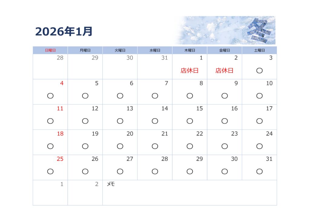 2026年 1月 営業日