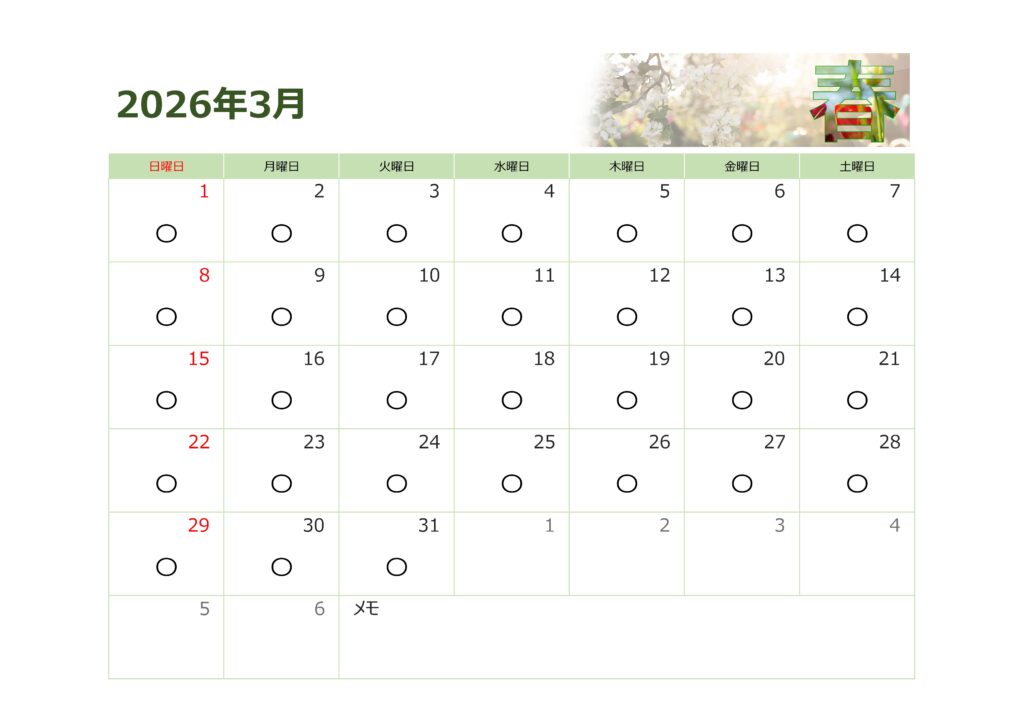 2026年3月 営業日